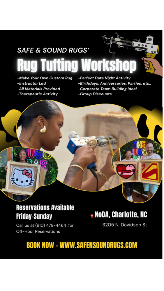 We got the idea to introduce classes in January 2023, with our rug tufting class being held at The Burrow in downtown Raleigh. Now we offer Monthly classes that will be hosted at The Portal NC located at 2902 Hillsborough St. Raleigh NC. (Close to NC State).